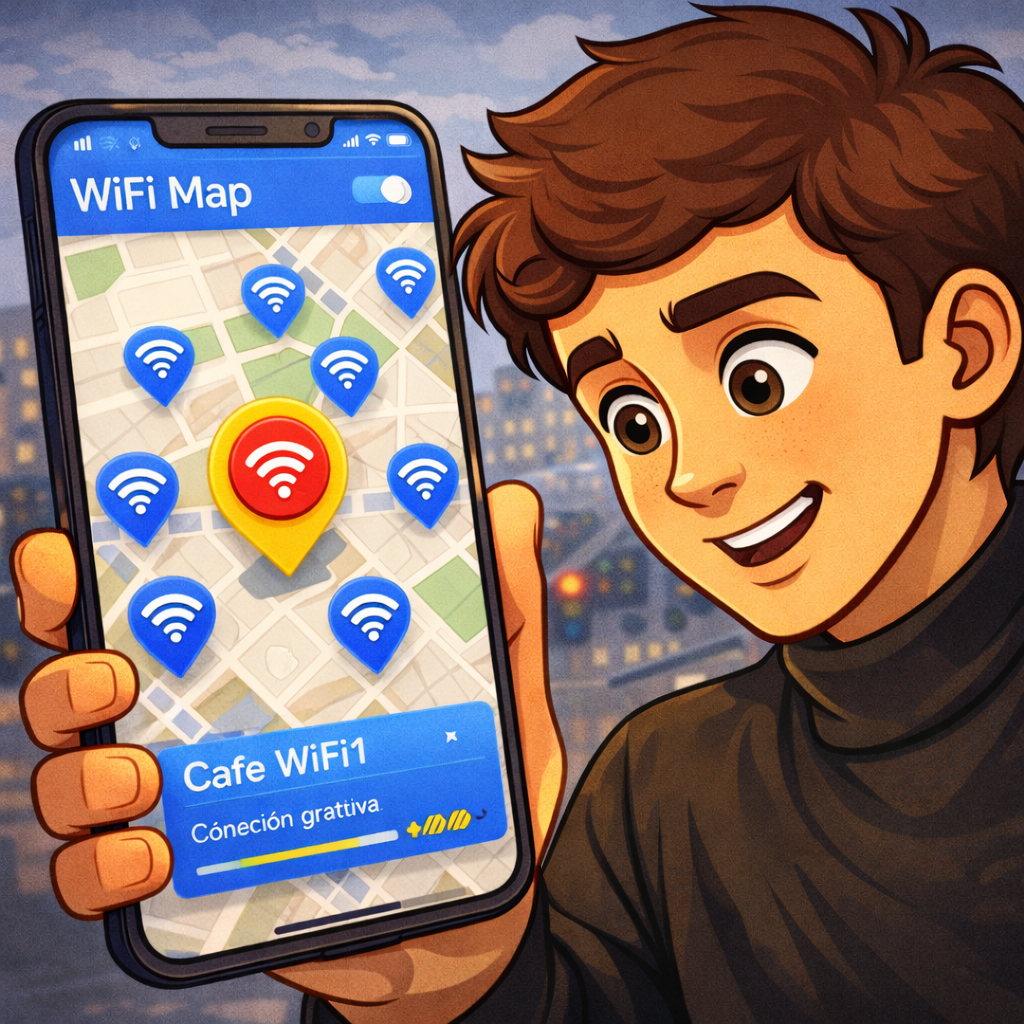 Encontrar una red WiFi cuando no tienes datos móviles puede ser urgente: enviar un archivo, revisar un correo o usar el GPS. WiFi Map es una aplicación que muestra puntos de acceso WiFi públicos y, en algunos casos, contraseñas compartidas por la comunidad. No crea internet gratis ni vulnera redes privadas; funciona como un directorio colaborativo. En este artículo verás cómo usarla correctamente, qué puedes esperar realmente, en qué situaciones falla y cómo reducir riesgos de seguridad al conectarte a redes públicas.